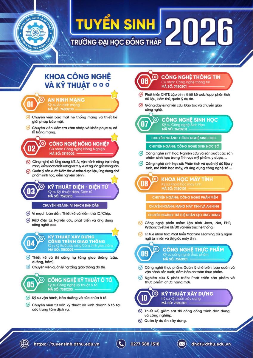 📢 Mọi thắc mắc, vui lòng liên hệ Bộ phận tuyển sinh DThU theo thông tin