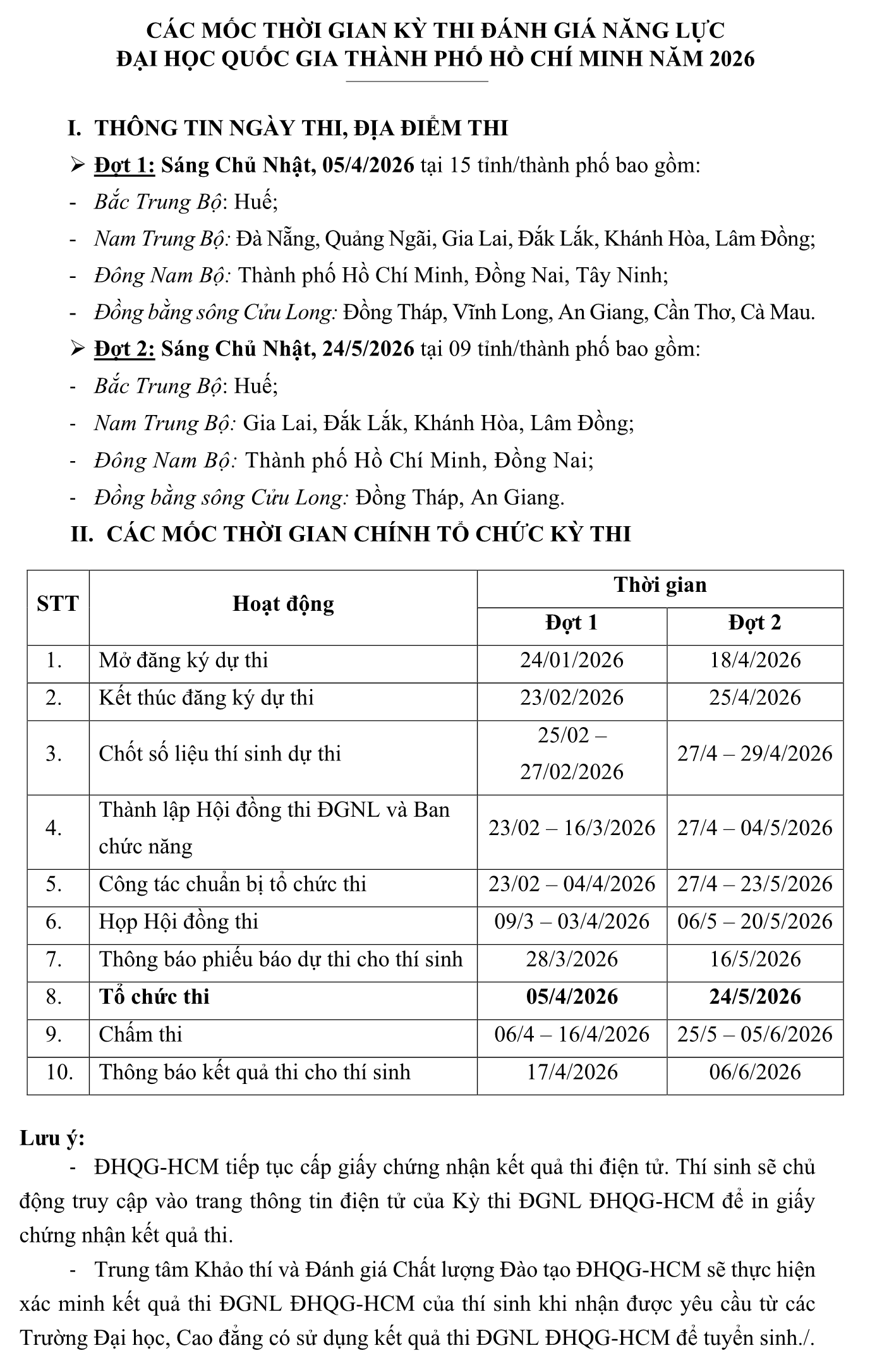 Kỳ thi Đánh giá năng lực 2026 của Đại học Quốc gia TP. Hồ Chí Minh